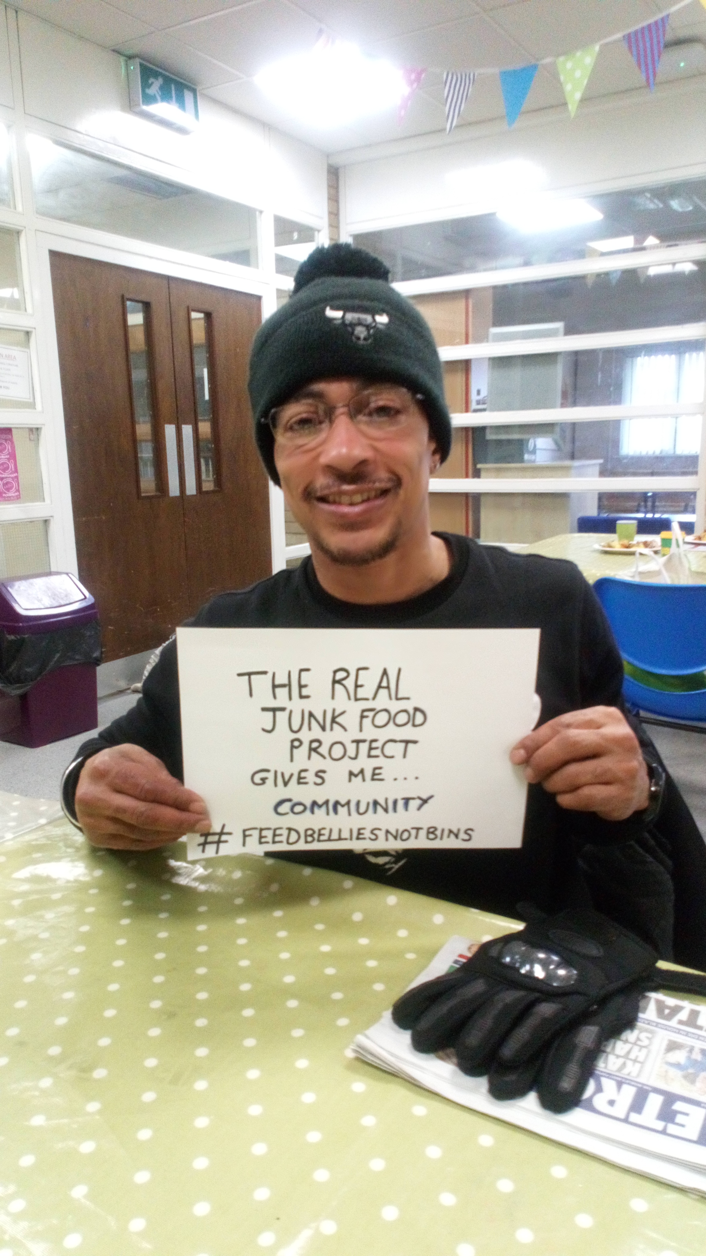 Justin first heard about The Real Junk Food Project Birmingham from Ann, volunteer coordinator, who he met at his child’s school. He liked the idea of the project and has since become a regular customer. At the café, Justin started meeting people from the local area and made some friends. They support each other when they have bad days and enjoy the good days.